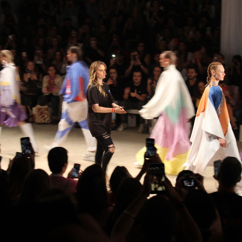 Mulheres da comunidade agrícola Yuba na passarela do SPFW